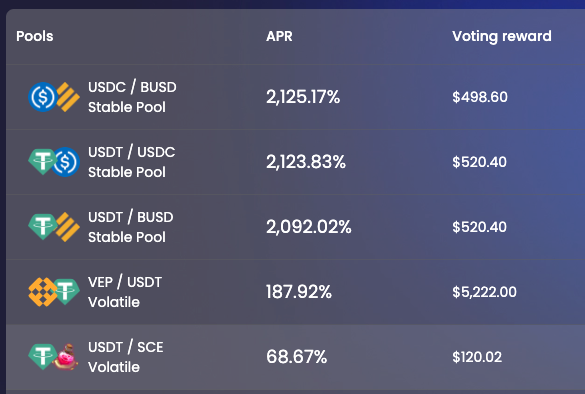 Users can vote to earn passive income by getting bribe rewards and swap fee rewards from the liquidity pools they vote for:&#x20;