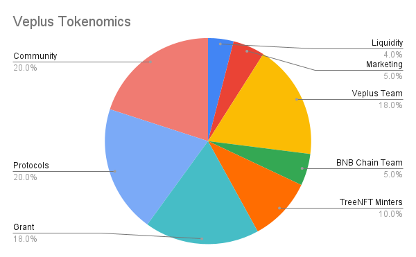 <figure><img src="https://4079933950-files.gitbook.io/~/files/v0/b/gitbook-x-prod.appspot.com/o/spaces%2FRH80CJhDXN2Z34z9ncbL%2Fuploads%2Fw3p3sPcBtggaZ9QutrIk%2FVeplus%20Tokenomics.png?alt=media&#x26;token=8c77d688-4fa5-47c2-aa2f-7b3aebe0f283" alt=""><figcaption><p>Veplus Tokenomics</p></figcaption></figure>